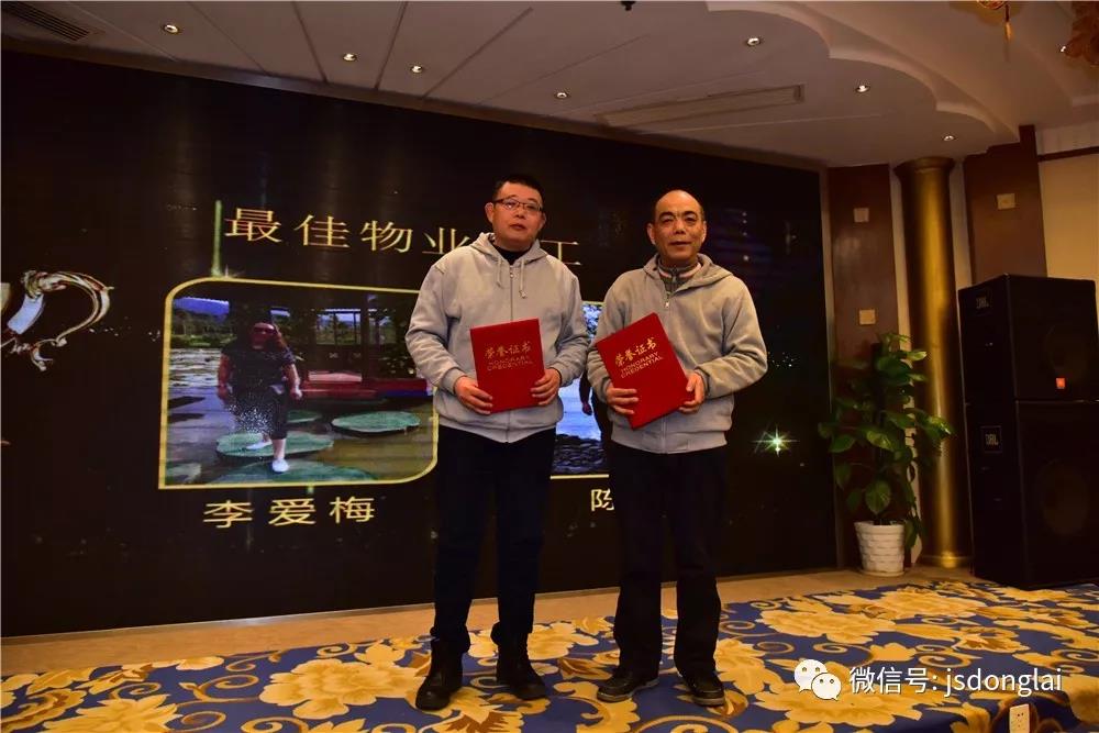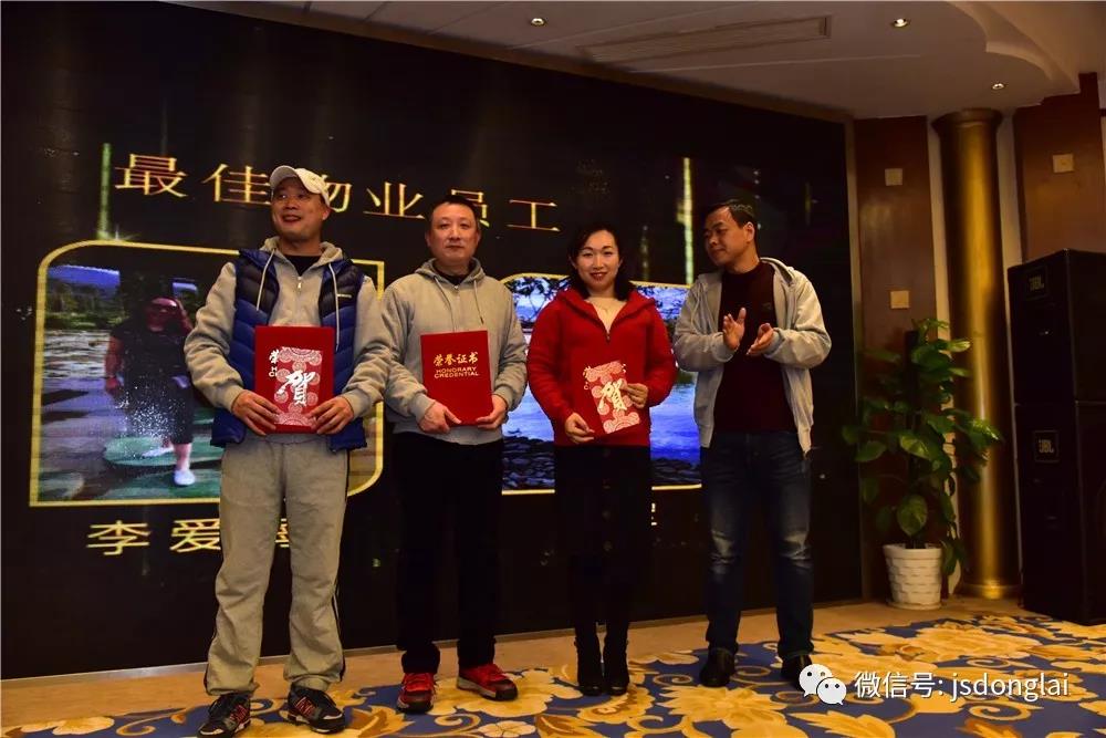 酒會(huì)上,集團(tuán)董事長(zhǎng)黃建良先生致新春寄語(yǔ);東來(lái)惠鄰總經(jīng)理王沖先生致祝酒辭。 隨后揭曉2017年度優(yōu)秀合理化建議學(xué)以致用獎(jiǎng)評(píng)選結(jié)果,表彰2017年度最佳物業(yè)員工、最佳職能員工、最佳管理者、學(xué)習(xí)之星獎(jiǎng)、年度最佳支持保障團(tuán)隊(duì)、年度最佳銷(xiāo)售團(tuán)隊(duì)、年度最佳銷(xiāo)售個(gè)人。同時(shí)為獲得榮譽(yù)的員工頒發(fā)證書(shū)和獎(jiǎng)品。 合理化建議一等獎(jiǎng)獲獎(jiǎng)?wù)撸豪钤讫垼欢泉?jiǎng)獲獎(jiǎng)?wù)?;張秀梅、李蓉、白穎、姚懷雨、施巍,學(xué)以致用獎(jiǎng)一等獎(jiǎng)獲獎(jiǎng)?wù)撸簭埿l(wèi);二等獎(jiǎng)獲獎(jiǎng)?wù)撸豪罴?、朱?最佳物業(yè)員工獲獎(jiǎng)?wù)撸宏愜?、李?lèi)?ài)梅最佳職能員工獲獎(jiǎng)?wù)撸簭垥粤兆罴压芾碚攉@獎(jiǎng)?wù)撸豪罴涯甓茸罴唁N(xiāo)售個(gè)人獲獎(jiǎng)?wù)撸簠翘鹛?年度最佳銷(xiāo)售團(tuán)隊(duì)獲獎(jiǎng)?wù)撸簶I(yè)務(wù)二部年度最佳支持保障團(tuán)隊(duì)獲獎(jiǎng)?wù)撸簜}(cāng)管物流部學(xué)習(xí)之星獎(jiǎng)獲獎(jiǎng)?wù)撸阂延? 酒會(huì)中,充滿(mǎn)了節(jié)日的喜慶,特別是令人激動(dòng)人心的抽獎(jiǎng)環(huán)節(jié)和穿插的互動(dòng)娛樂(lè)游戲,把酒會(huì)推向高潮,掌聲、笑聲跌宕起伏,一浪高過(guò)一浪;大家在歡樂(lè)、喜慶的氣氛中,共同迎接農(nóng)歷雞年的到來(lái)。讓我們把今天的歡樂(lè)延續(xù),攜手共進(jìn),邁入充滿(mǎn)希望的2018年!