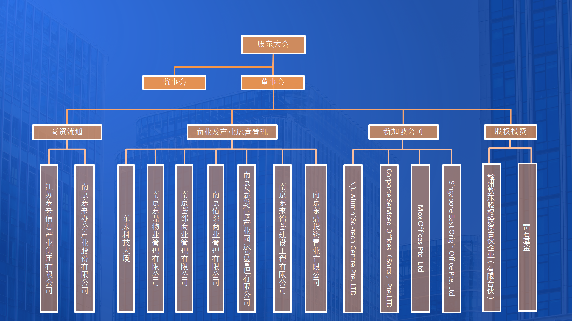 權(quán)投資為輔的業(yè)務發(fā)展道路,下設南京東來辦公產(chǎn)業(yè)股份有限公司、南京薈鄰商