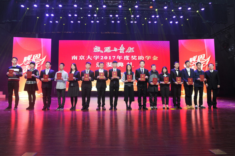 在感恩篇,典禮現(xiàn)場(chǎng)通過(guò)一段視頻生動(dòng)展現(xiàn)了南京大學(xué)獲獎(jiǎng)學(xué)生代表的風(fēng)采,隨后進(jìn)行2017年度獎(jiǎng)助學(xué)金的頒獎(jiǎng)。